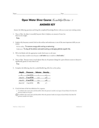 Download Open Water Diver Course Knowledge Review 1 Answer Key Reader